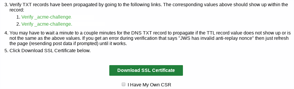 - #host -t txt _acme-challenge.YOUR_DOMAIN